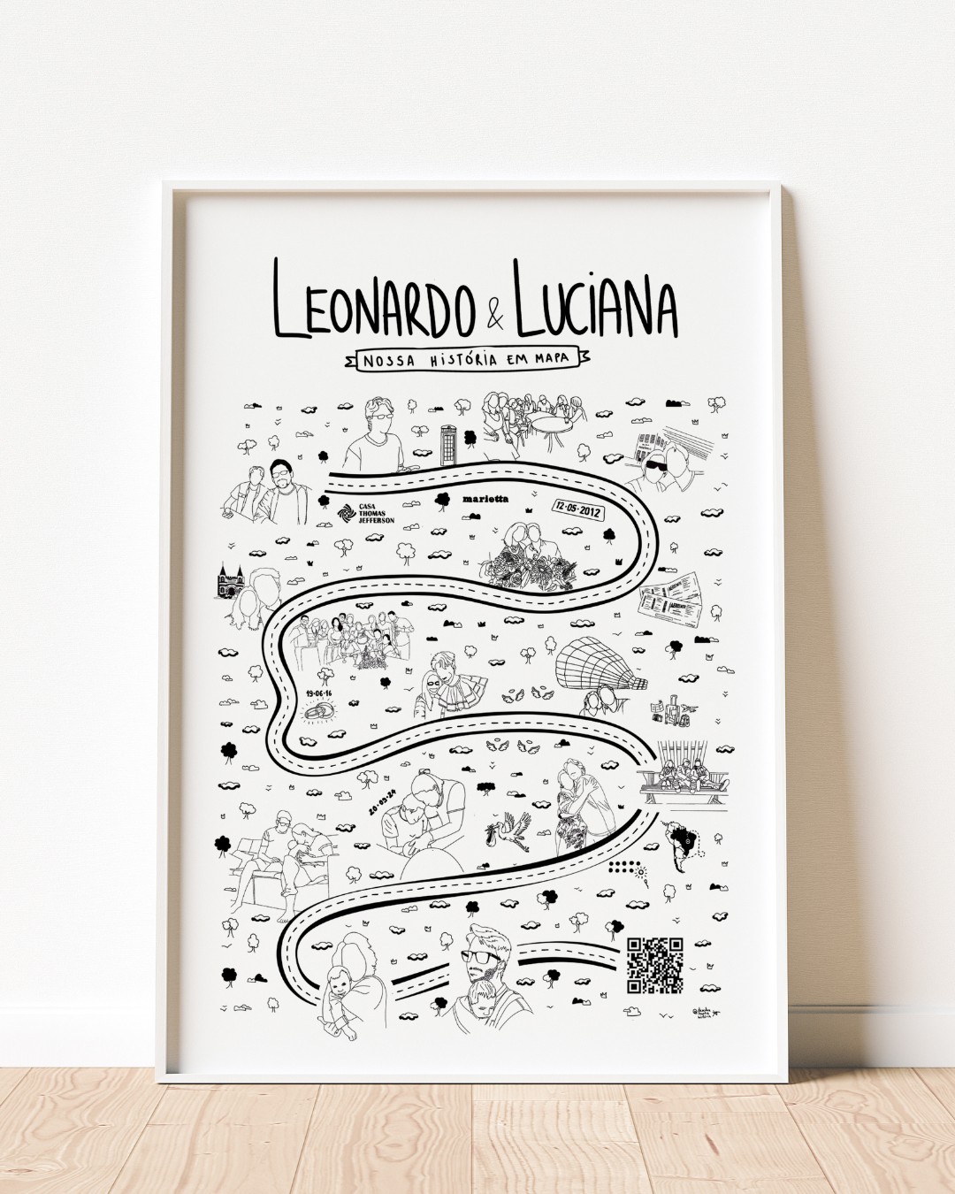 Após sua compra você receberá um e-mail com um formulário e um passo a passo das informações necessárias para a criação. Lugares que marcaram sua vida ou seu namoro, pets, viagens, e situações que te tiram um sorriso, tudo isso pode virar um mapa!