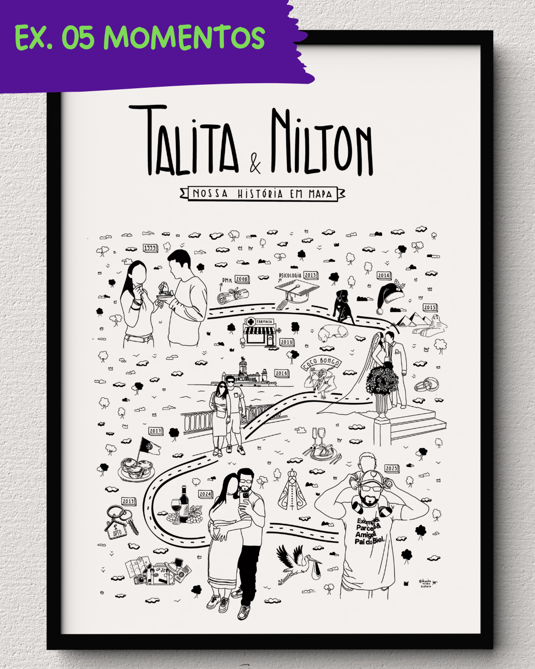 Sua história em um mapa com 5, 10, 15, 20 ou até 30 momentos especiais na sua jornada + 20 objetos/elementos