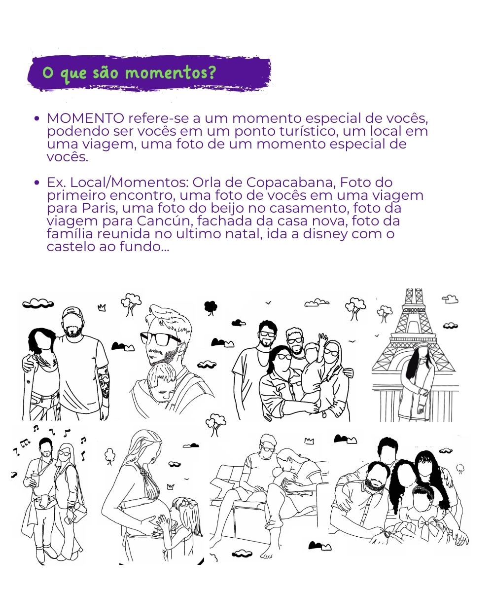 LUGAR/MOMENTO refere-se a um lugar físico, podendo ser um ponto turístico, um local em uma viagem, uma foto de um momento especial de vocês.